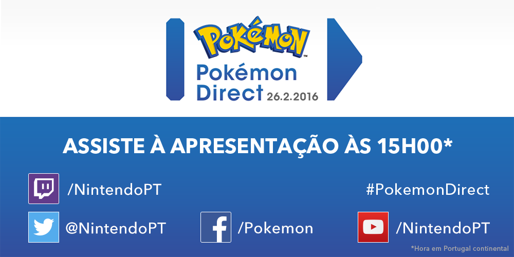 Como sabem, sábado é o dia do 20º Aniversário de Pokémon. No entanto, parece que a Nintendo tem preparadas novidades para dia 26. Foi anunciado que, nesse dia, irá acontecer um Pokémon Direct, pelas 15h ( 12h em Brasília). Para quem não sabe, a primeira vez que houve um Pokémon Direct, foi quando foi anunciado Pokémon XY.